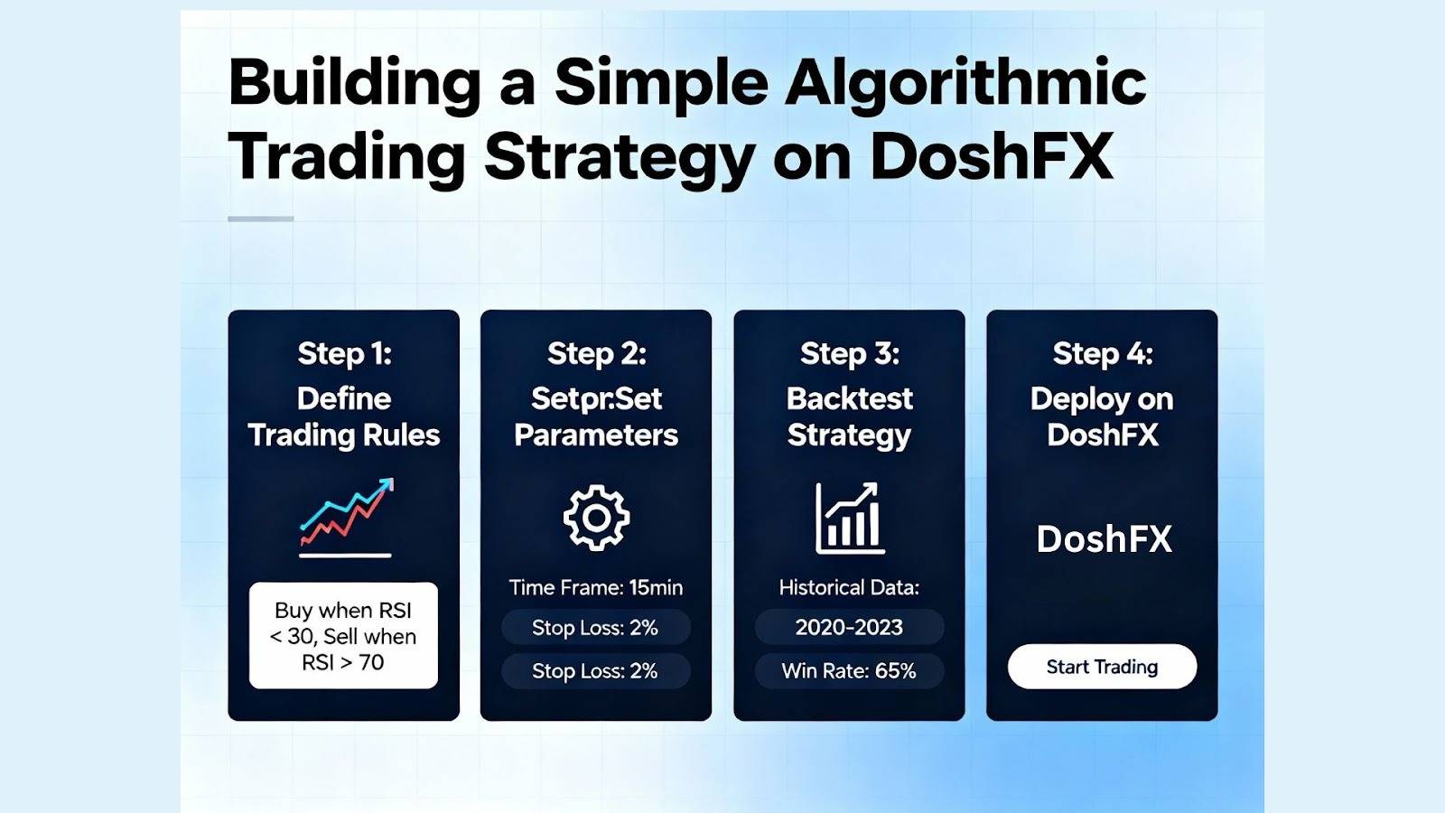 Explain that DoshFX is a multi-asset platform offering forex, commodities, indices, shares, and ETFs with fast execution and low spreads, which makes it suitable for systematic trading. Mention that its MT5 integration and automation-ready tools allow traders to turn clear rules into executable algorithms instead of relying on emotions